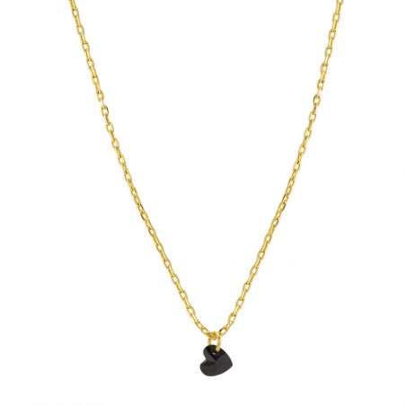 Le pendentif que vous avez partagé présente un design minimaliste et élégant. Il se compose d'une fine chaîne dorée, mettant en valeur un petit cœur en cristal NOIR transparent. Le cristal en forme de cœur, suspendu délicatement, apporte une touche de raffinement et de simplicité à ce bijou.