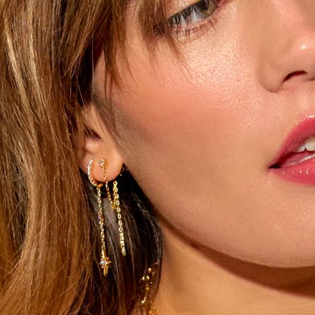 Leur design raffiné, avec une étoile suspendue et une fine chaîne, illumine votre style tout en restant subtilement sophistiqué. Ces boucles s’attachent délicatement de chaque côté de l’oreille, créant un effet unique et tendance.