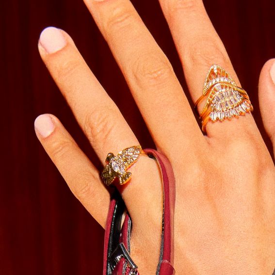 Sublimez votre allure avec la bague Eagle MYA BAY, une pièce audacieuse et intemporelle, dorée à l’or fin recyclé 24 carats. Inspirée par la puissance majestueuse de l’aigle, cette bague incarne force, liberté et élégance.