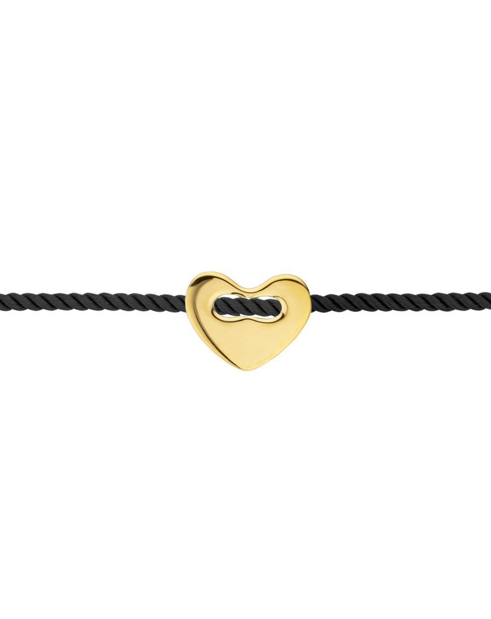 Le bracelet BLACK CORAZON de MYA-BAY revisite l'icône best-seller de la marque dans une version élégante et audacieuse. Son cœur doré à l’or fin 24 carats se détache avec subtilité sur un cordon noir intense, créant un contraste à la fois chic et intemporel.