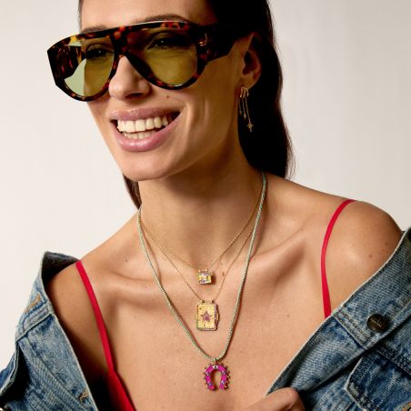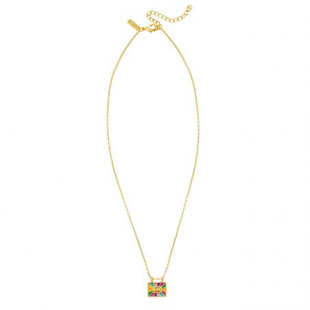 Le collier RAINBOW EL PASO de MYA—BAY, doré à l’or fin recyclé 24 carats, capture toute la magie d’un coucher de soleil sur le désert texan grâce à son pendentif rectangulaire en émail multicolore. Flamboyant et vibrant, il insuffle énergie et style à vos looks. Avec sa longueur réglable de 38 cm + 5 cm de chaînette, il s’adapte à toutes vos envies de porté. Une pièce forte, symbole de bonne humeur et d’audace.