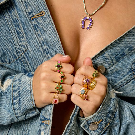 La bague TURQUOISE MADEMOISELLE de MYA—BAY illumine vos looks d'une touche fraîche et colorée. Dorée à l’or fin recyclé 24 carats, elle est sublimée par un émail turquoise éclatant, inspiré des fleurs de cactus en plein désert. Avec son design fin et sa teinte vibrante, cette bague est idéale pour insuffler une note pop et ensoleillée à votre quotidien.