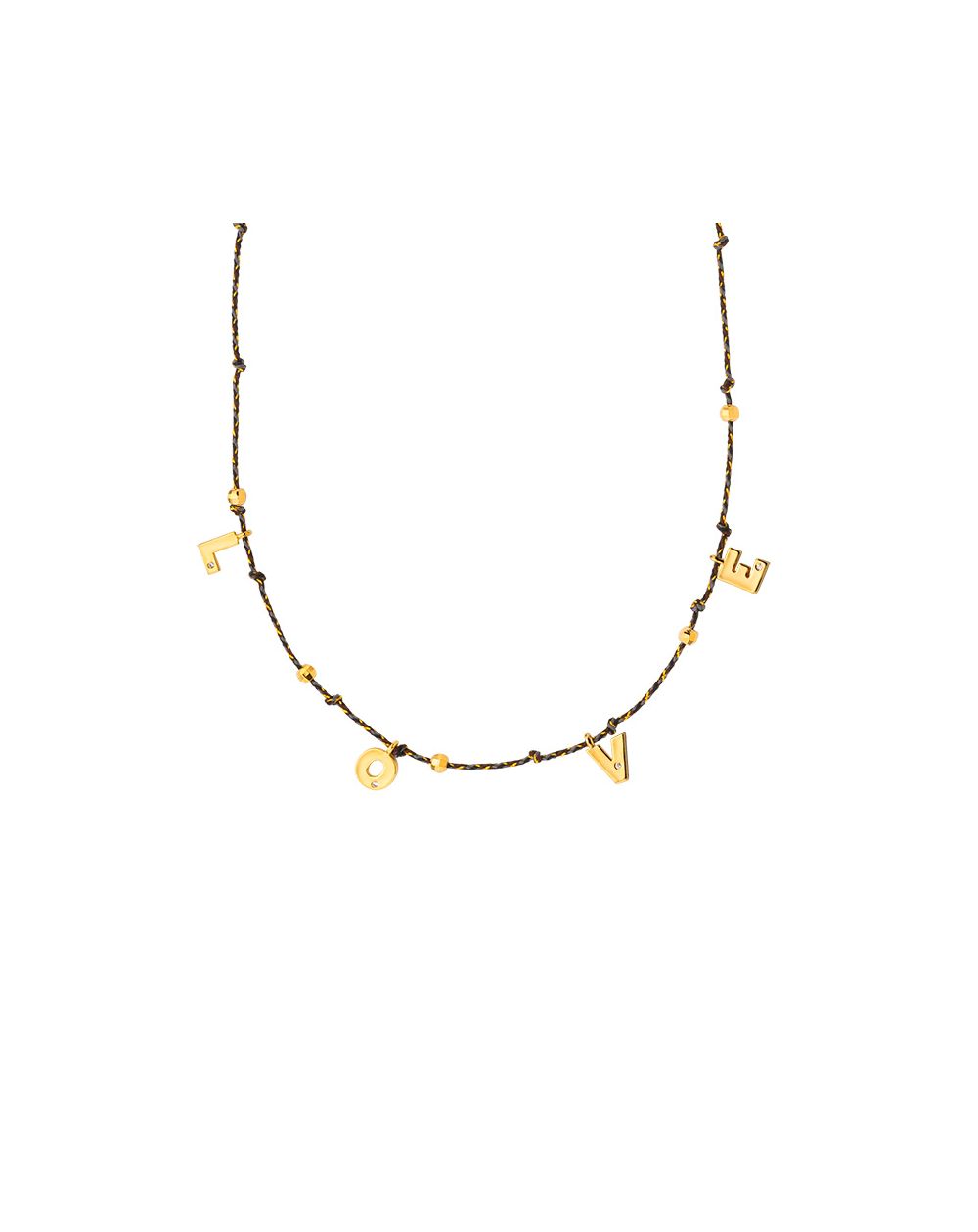 Audacieux et plein de sens, le collier Love Liberty de Mya Bay affiche avec élégance le mot LOVE à travers des lettres dorées à l’or fin 24 carats, suspendues à une chaîne en cordon tressé noir et doré. Agrémenté de petites perles dorées, il apporte une touche bohème chic et moderne à toutes vos tenues.