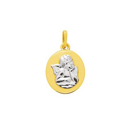 Ce pendentif en or 9 carats est une médaille en or bicolore dont vous pouvez graver l'arrière, d'une date ou d'un prénom.