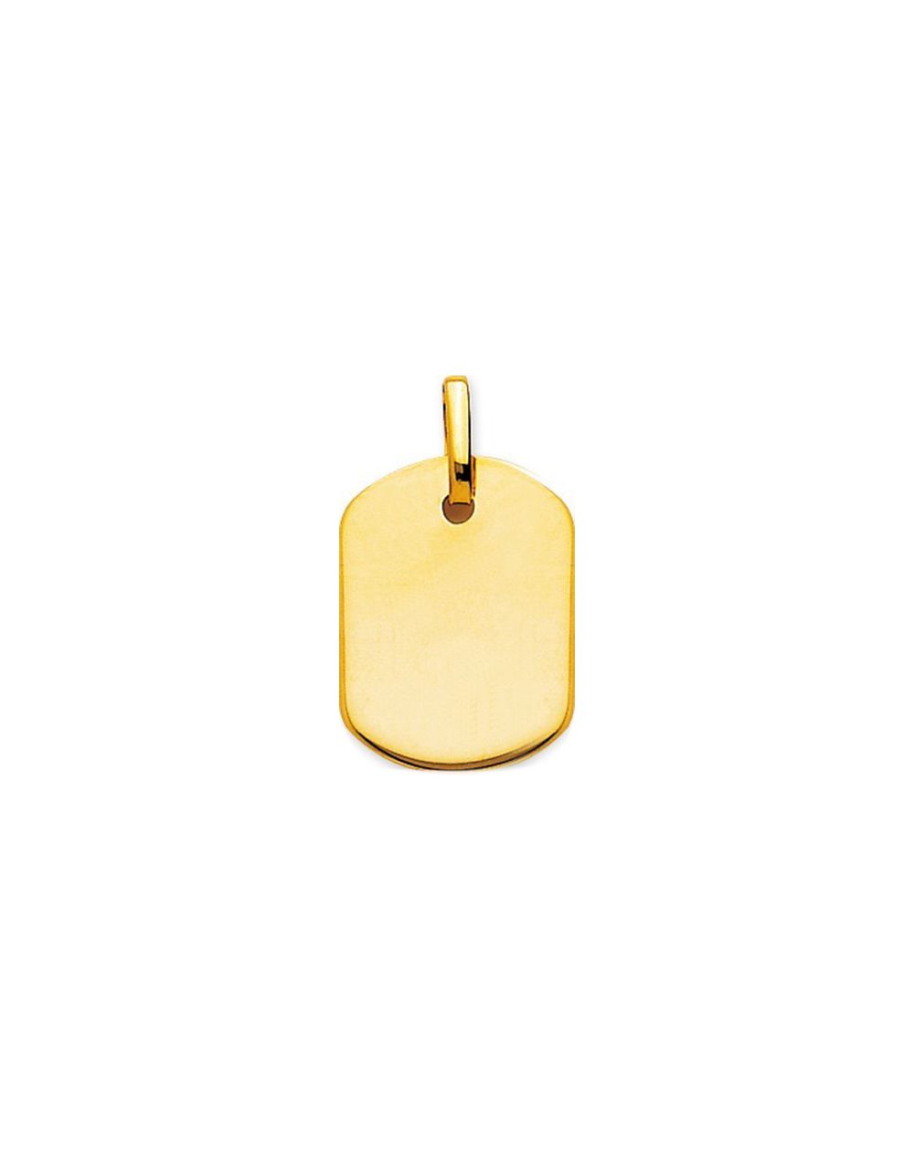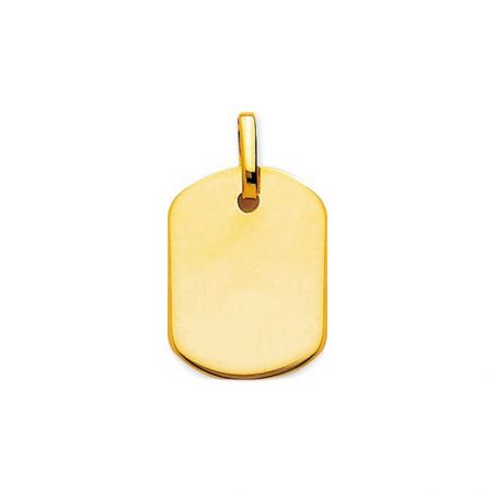 Cette plaque en or 9 carats est un pendentif rectangulaire aux bords arrondis. Celle-ci peut être gravée sur chacune des faces.