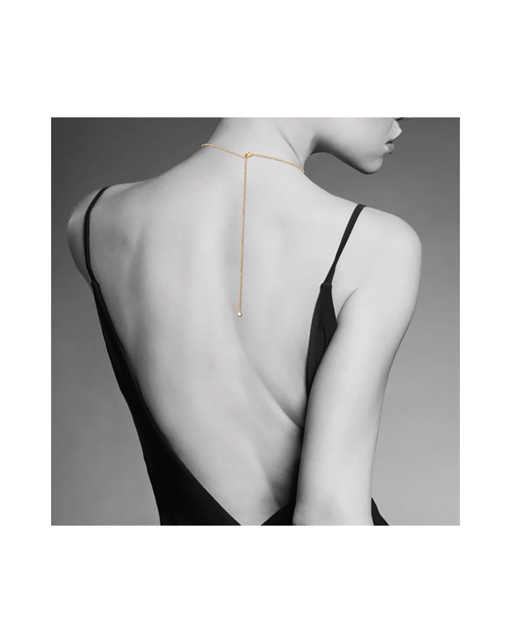 Collier de dos pendant en plaqué or 18 carats avec chaine tombant le long du dos avec un charmant oxyde de zirconiums.
