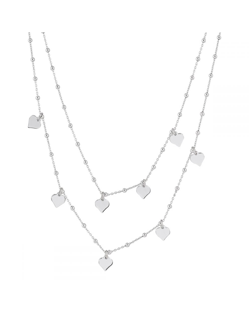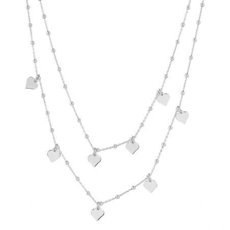 Ce collier pour femme est un collier multi-rangs en argent 925 doté de coeur en breloque sur le pourtour. Ce collier est réglable en longueur.