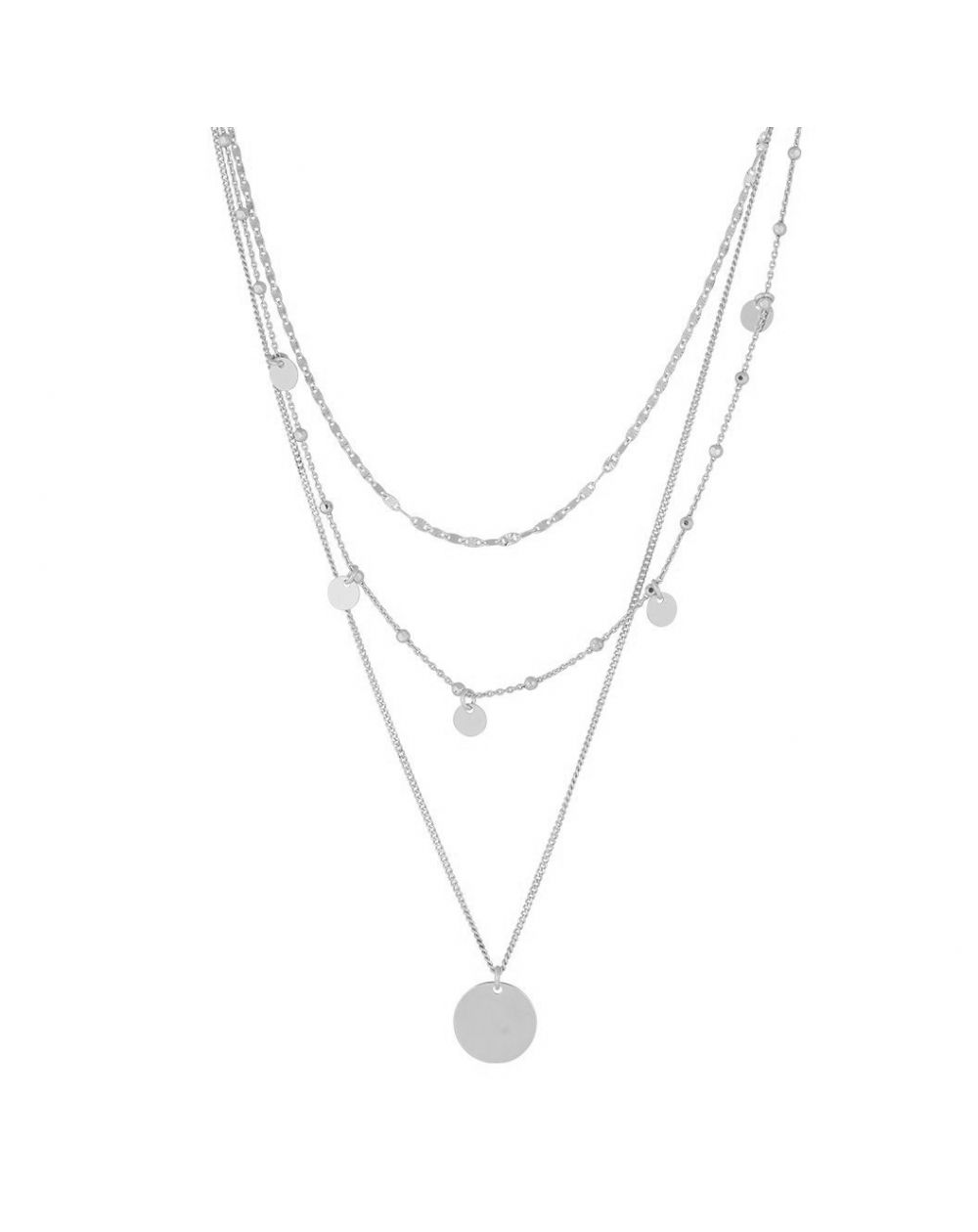 Ce collier pour femme est un collier multi-rangs doté de médailles. La plus grande des médailles peut être gravée de quelques lettres. Ce collier est réglable en longueur.