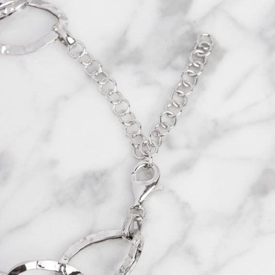 Ce collier pour femme est un collier doté de mailles martelées. La maille mesure 17mm de large sur 23mm de long.
