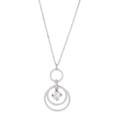 Ce collier pour femme est un collier doté de plusieurs cercles et d'une pierre en oxyde de zirconium mesurant 5mm de diamètre.
