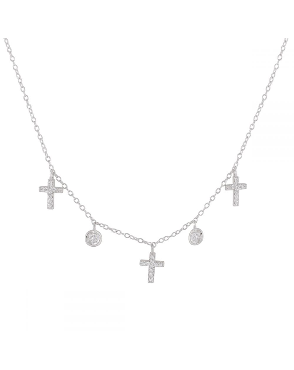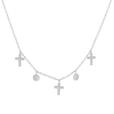 ce collier en argent 925 est réglable de 38cm à 41cm et est compose de croix et zircons clos pendants