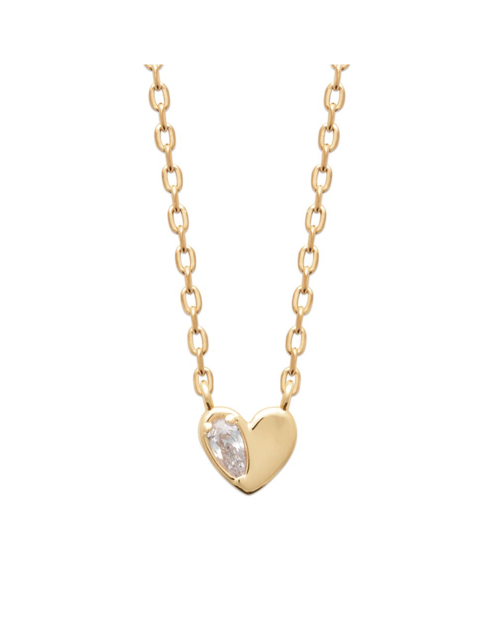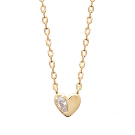 Ce collier est un collier coeur empierré de pierres en oxyde de zirconium sur la moitié.