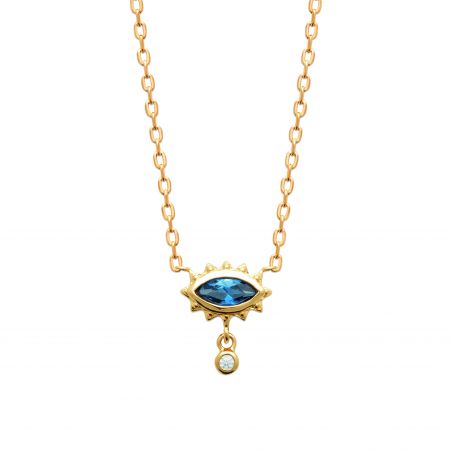Ce collier est un collier plaqué en or 18k, réglable en longueur. ce collier est composé d'un pendentif en forme d'oeil.