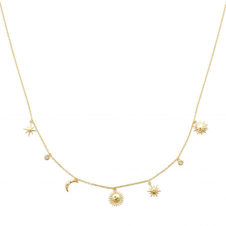 Ce collier est un collier plaqué or 18 carats doté d'étoile, d'un soleil et d'une lune. Ce collier est réglable en longueur .