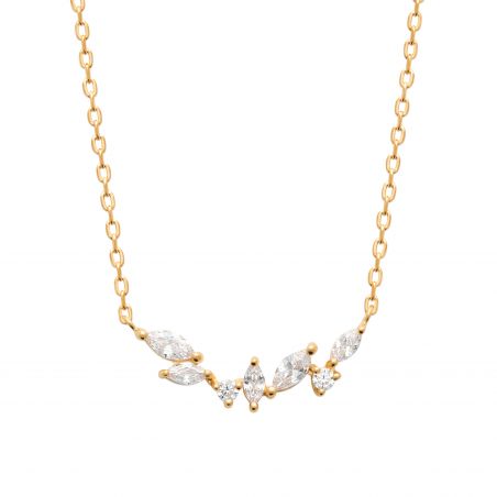 Ce collier est un collier plaqué or 18k réglable en longueur. Ce collier est composé d'un pendentif arrondi, avec des pierres d'oxydes de zirconiums?