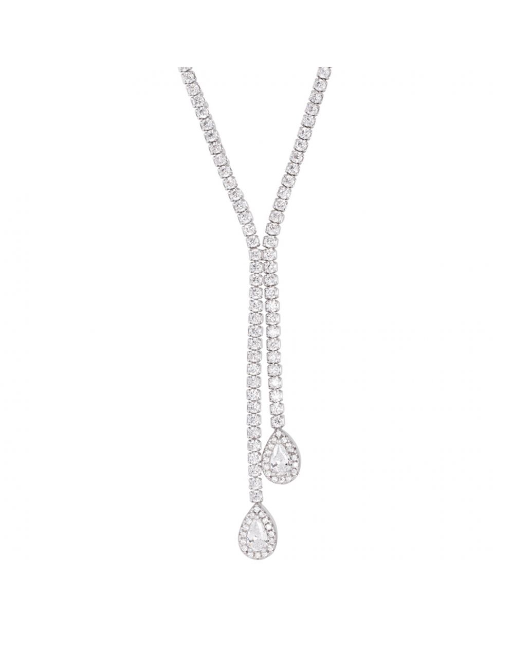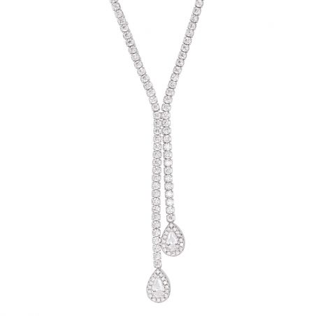 Ce collier toi et moi est un collier serti de pierres en oxyde de zirconium sur tout le pourtour et doté de 2 pierres en forme de goutte. Le pendentif mesure 5cm de haut.