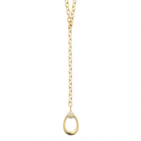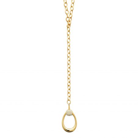 Ce collier sophistiqué en plaqué or se distingue par sa chaîne à larges maillons et son pendentif en forme de goutte délicatement sculptée. Le pendentif est sublimé par une élégante rangée de zircons étincelants, ajoutant une touche de raffinement et de luminosité. Avec son design épuré et moderne, ce collier est une pièce incontournable qui rehaussera vos tenues avec style et élégance. Idéal pour les occasions spéciales ou pour apporter une note de glamour à votre quotidien.