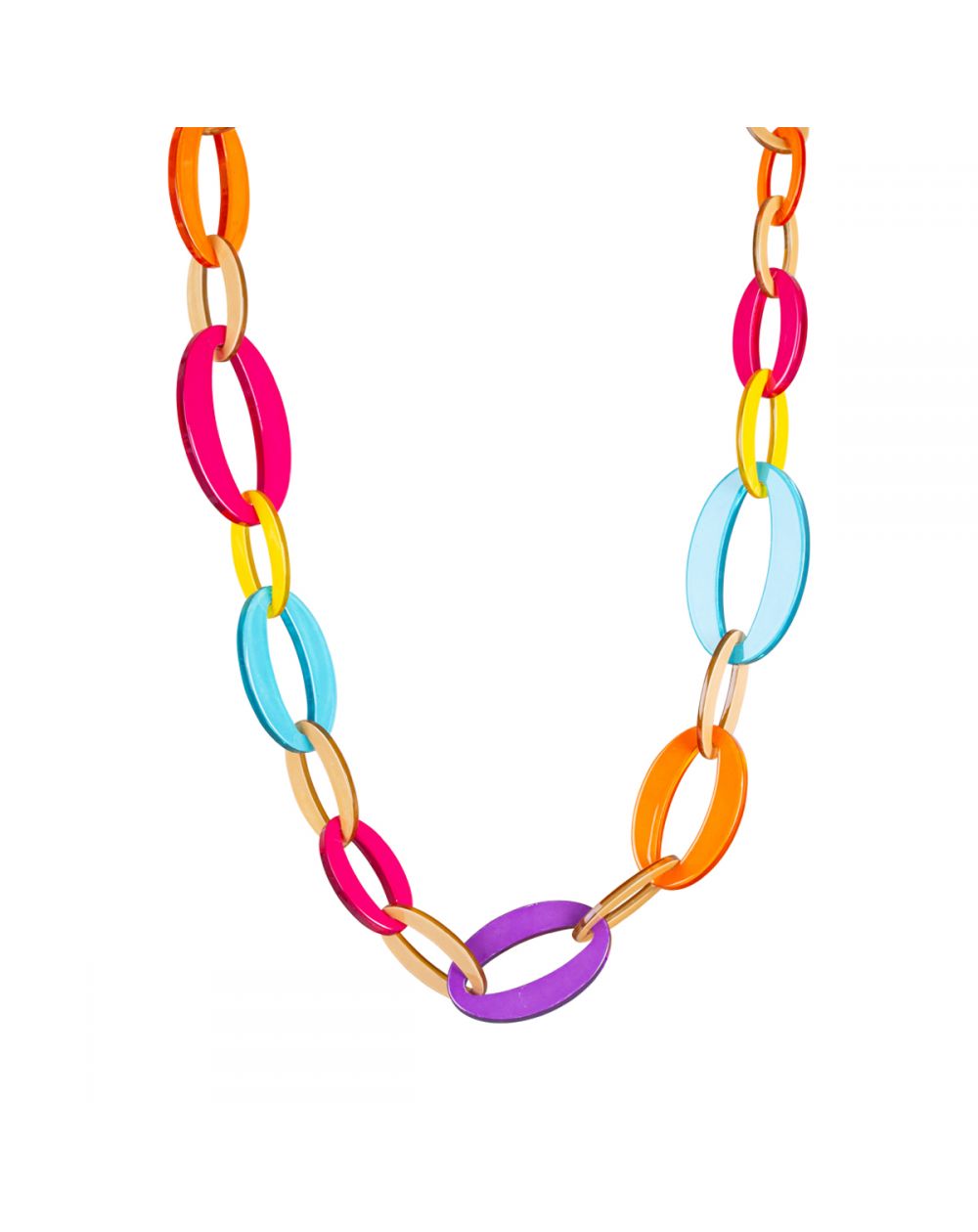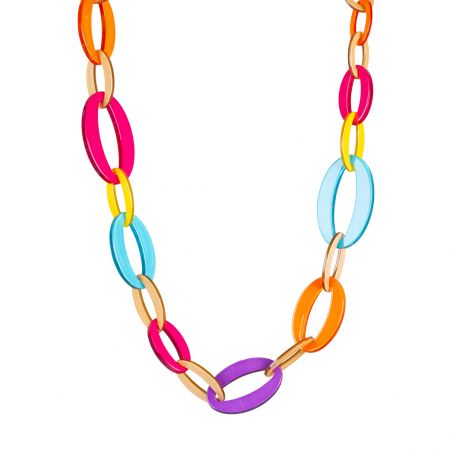 Ce collier femme coloré est un grand sautoir composé d'ovale coloré. Ce collier mesure 50cm et est réglable en longueur jusqu'à 58cm.