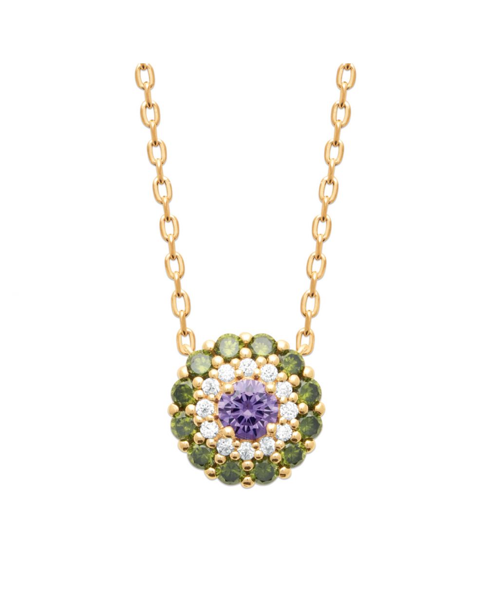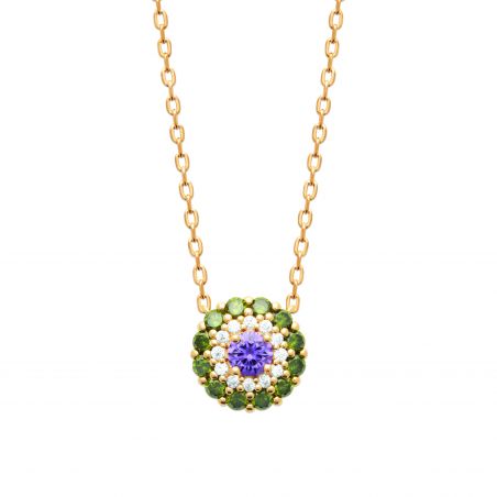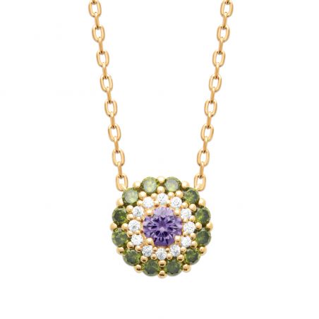 Collier fleur doré mauve et vert