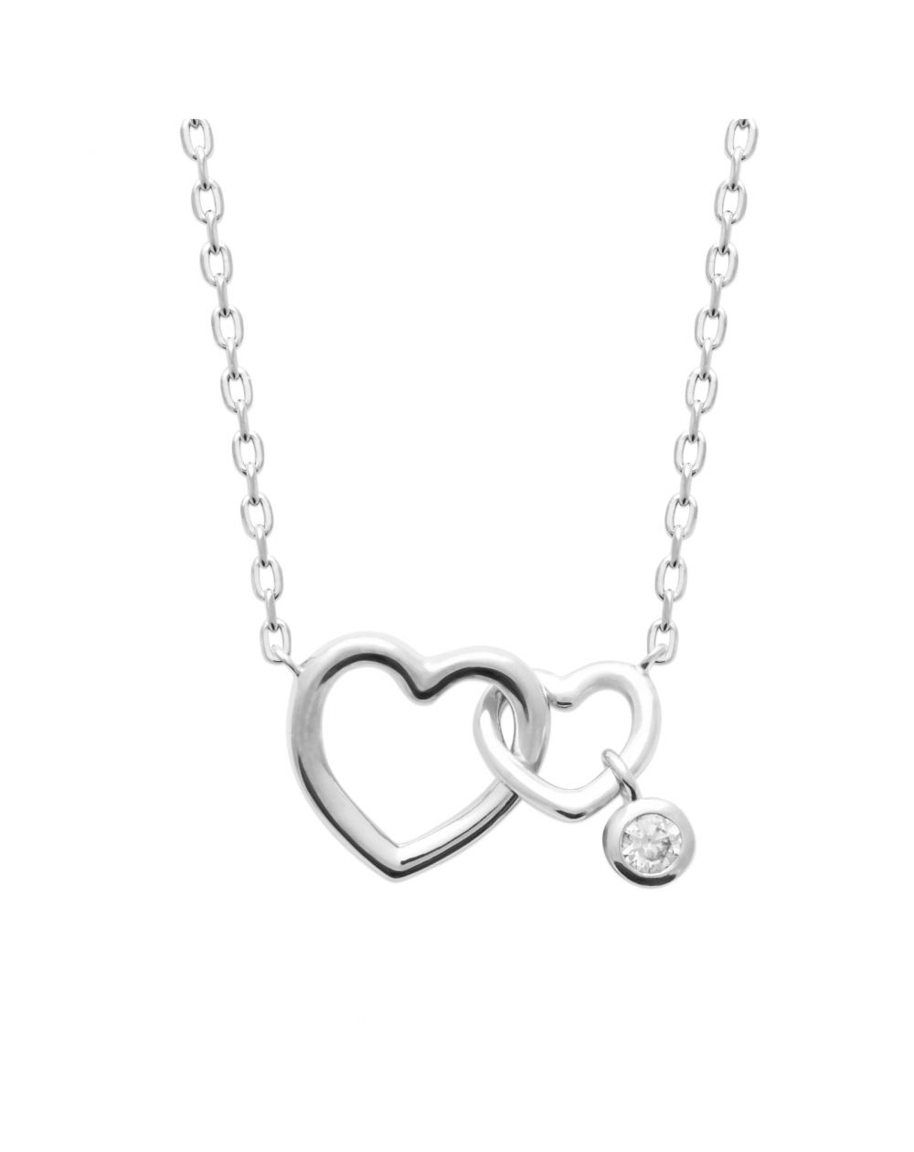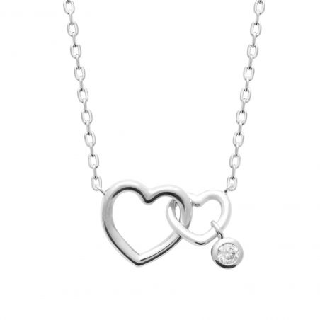Collier argent double coeur breloque zirconium