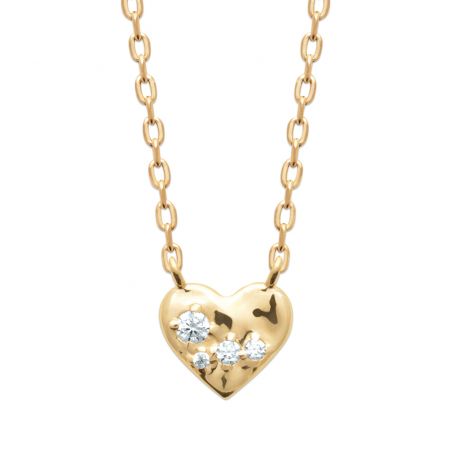 Laissez parler votre cœur avec ce collier en forme de cœur doré, orné de quatre oxydes de zirconium scintillants. Son pendentif délicat, monté sur une chaîne fine en plaqué or, incarne l’élégance discrète et l’amour éternel.