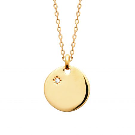Collier plaque ronde empierrée plaqué or 18ct