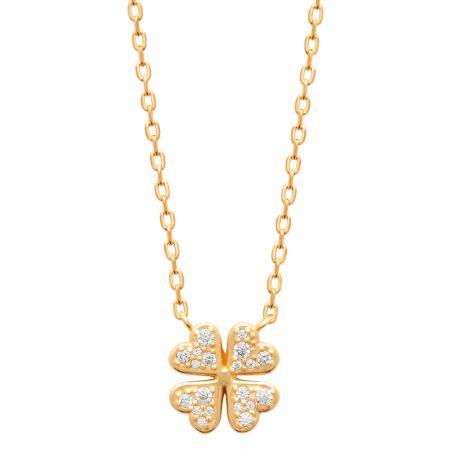 Collier trèfle porte-bonheur femme en plaqué or 18 carats et zirconiums