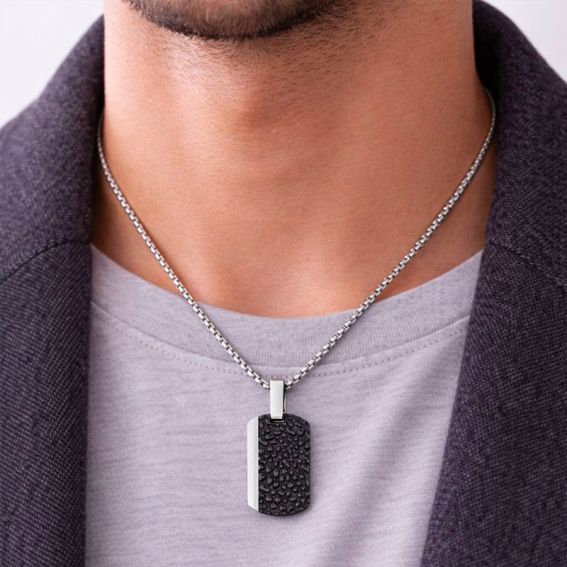 Affirmez votre style avec ce collier homme acier noir, au design moderne et épuré. Pensé pour les amateurs de bijoux masculins contemporains, ce modèle séduit par son pendentif rectangulaire noir texturé, à la fois sobre, élégant et résolument actuel.