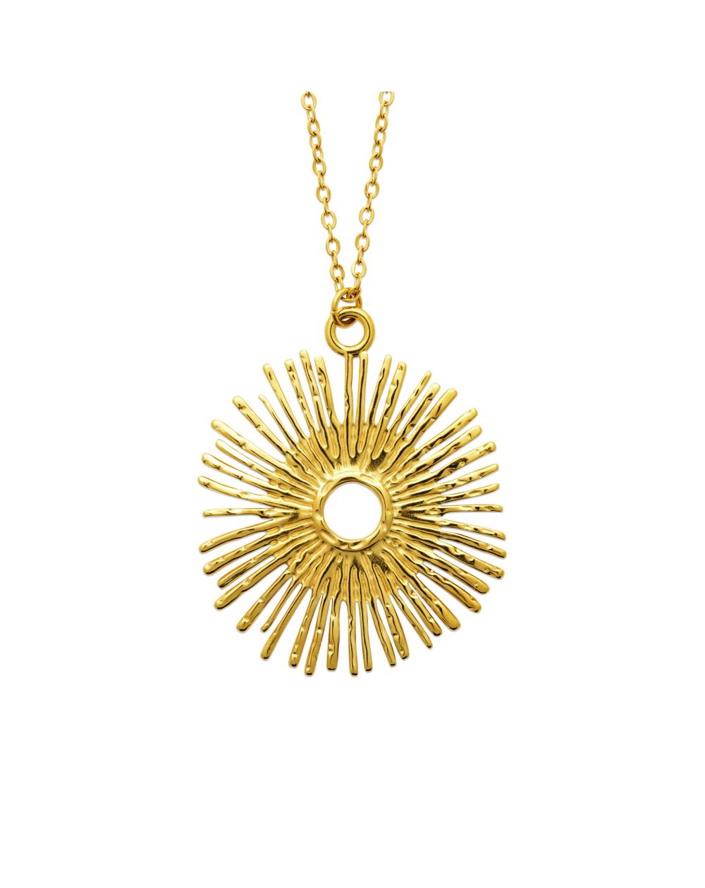 Affirmez votre style avec le collier Aurora Soleil, une pièce lumineuse au design inspiré des rayons du soleil. Son pendentif graphique capte immédiatement le regard et apporte une touche solaire et élégante à toutes vos tenues.
