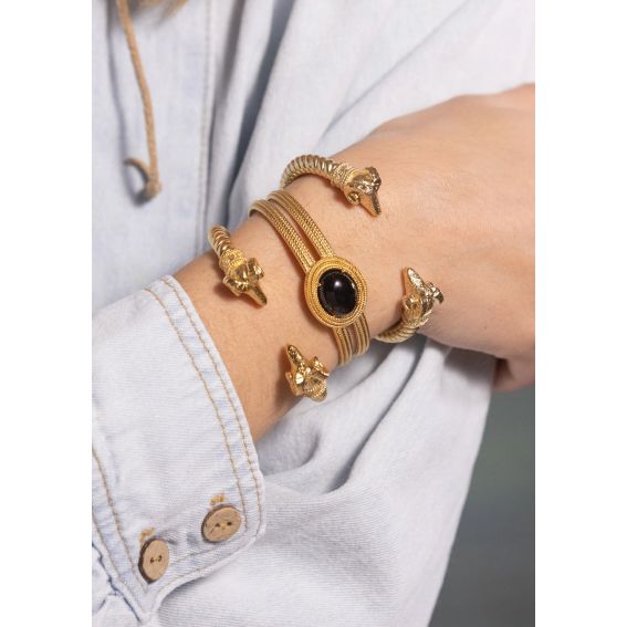 La Collection Constance célèbre le Dieu Titan "Krios", signifiant "Bélier". Dans la Grèce antique, sa constellation marquait le début du printemps. Ce jonc arbore deux têtes de bélier taillées avec soin.