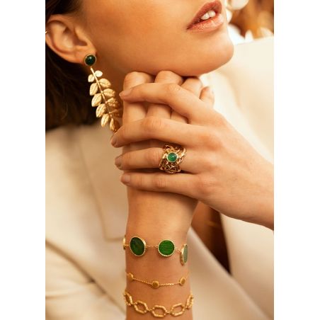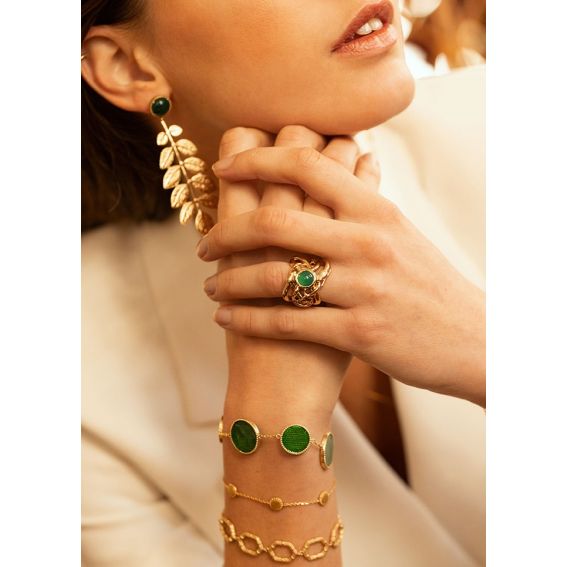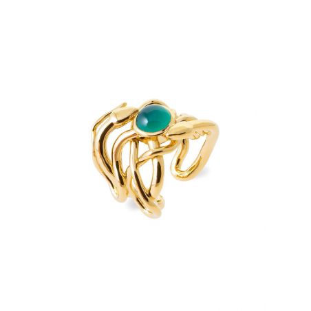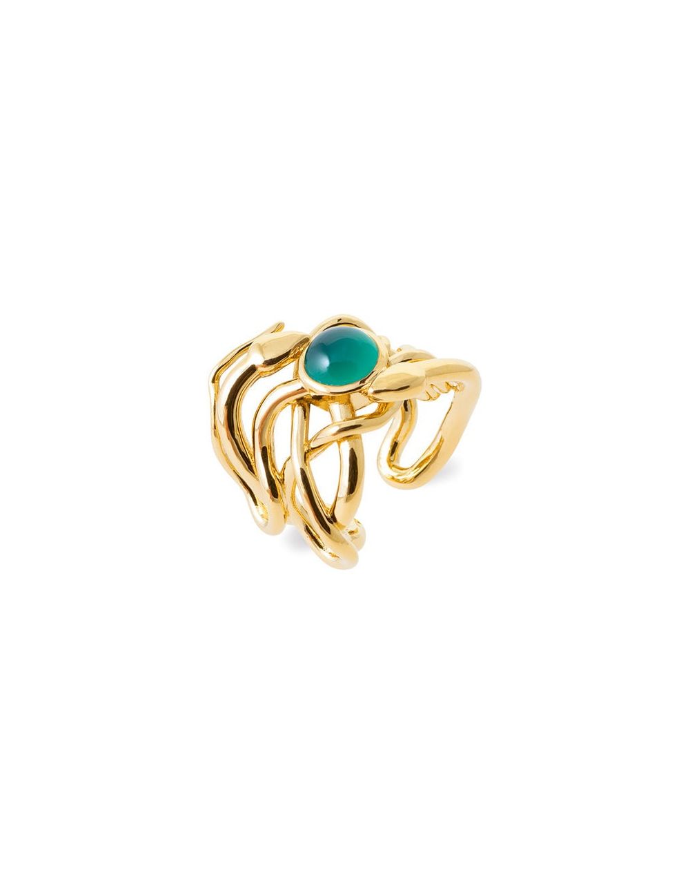 La Collection Constance présente la bague Ekhis, nommée d'après le mot grec pour serpent, un symbole récurrent de la Grèce antique. Cette bague ajustable combine modernité et élégance avec ses deux serpents entourant une pierre centrale unique, offrant une finition lisse et brillante.
