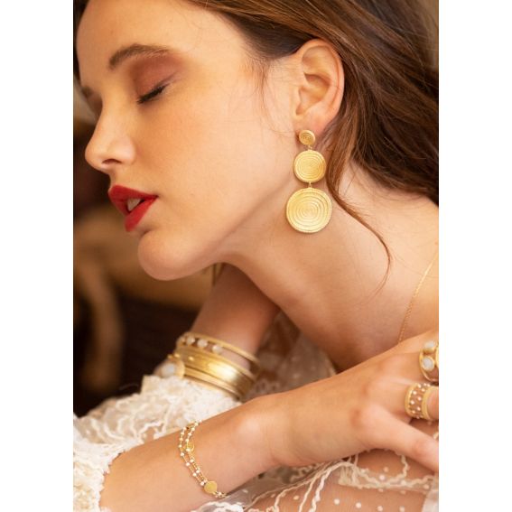 Les boucles d'oreilles Demeter, inspirées par la déesse de la terre et des moissons, arborent un design qui symbolise la terre fertile moissonnée en été. Parfaites pour éclairer votre visage lors de grandes soirées, elles rendent hommage à leur divine muse.