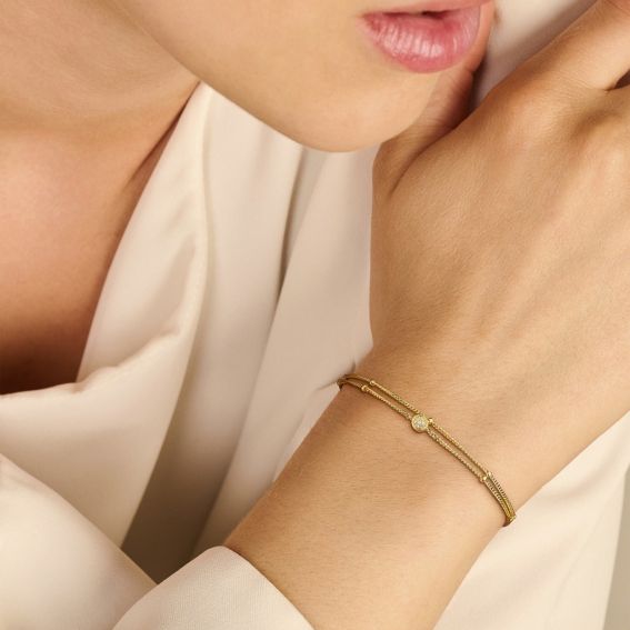 Découvrez la nouvelle édition de notre emblématique et best-seller bracelet First diamant. Le même centre de sept diamants, désormais disponible sur une chaîne double perlée ludique. Toujours le meilleur choix pour commencer votre collection de bijoux en diamant au quotidien et à superposer facilement avec vos futures acquisitions.