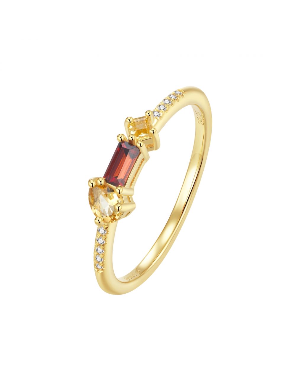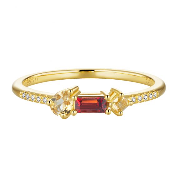 La Bague Seraphine incarne l’élégance moderne avec une composition lumineuse de grenat rouge profond et de citrines jaune clair, sublimée par 10 diamants étincelants sertis le long de l’anneau. Inspirée par l’intensité d’une flamme scintillante, elle dévoile un jeu de couleurs chaleureux et captivant qui attire immédiatement le regard.