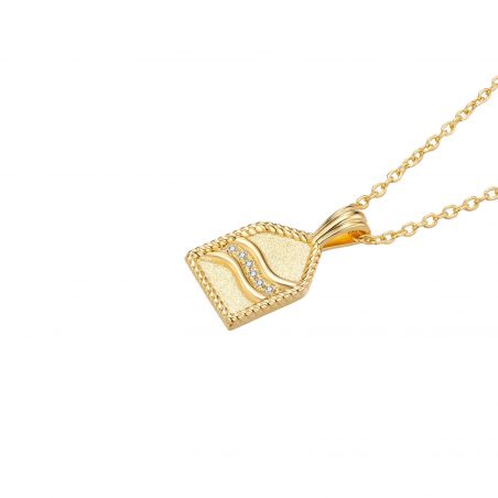 Le Collier Ondine s’inspire de la puissance apaisante de l’eau en mouvement. Son pendentif en forme de pentagone se distingue par une finition délicatement brossée et un contour torsadé rappelant le mouvement fluide des vagues. Au cœur du bijou, trois lignes élégantes symbolisent un courant harmonieux, dont la centrale est sublimée par 6 diamants naturels, scintillant tels des gouttelettes de lumière.