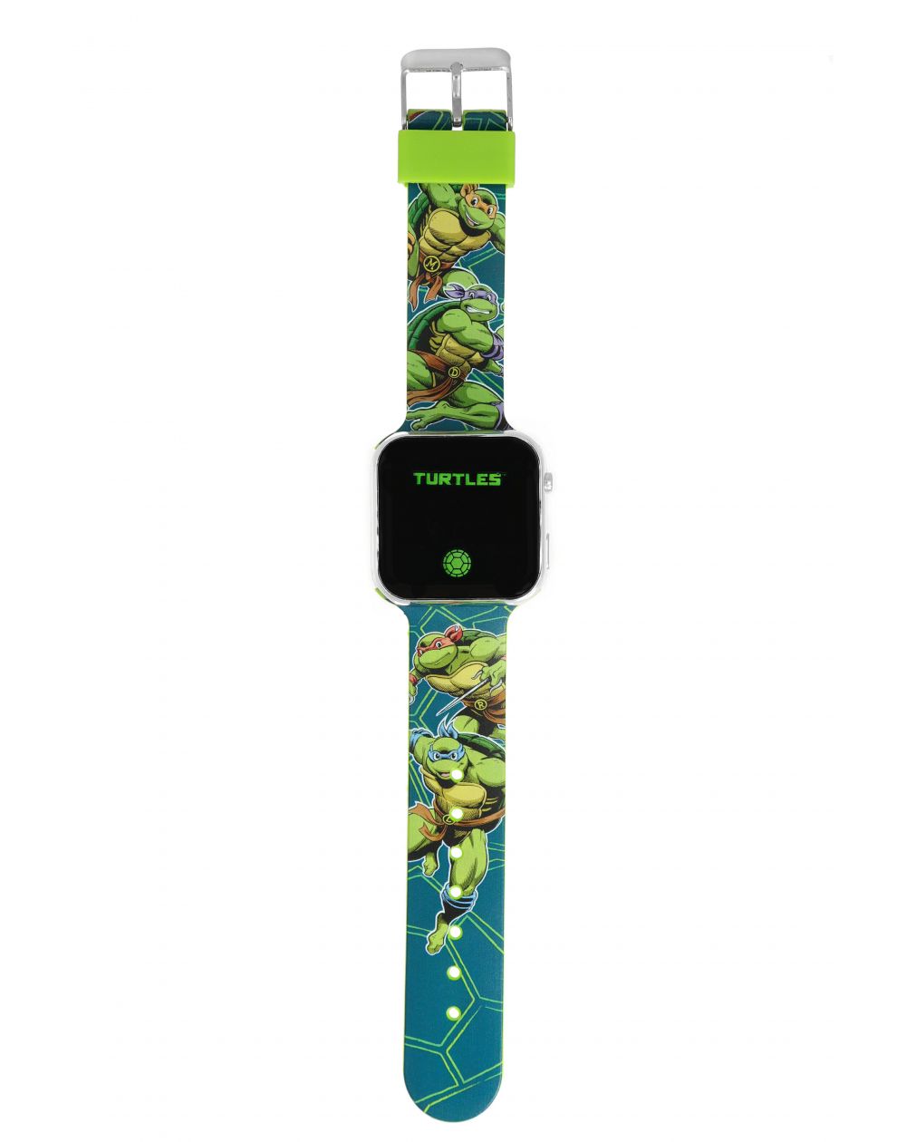 Cette montre digitale Teenage Mutant Ninja Turtles arbore un design dynamique avec un bracelet illustré des célèbres tortues ninja en pleine action. Son écran LED moderne affiche l’heure avec un style inspiré de l’univers TMNT. Idéale pour les fans de Leonardo, Michelangelo, Donatello et Raphael, elle allie aventure et praticité pour un look héroïque au quotidien.