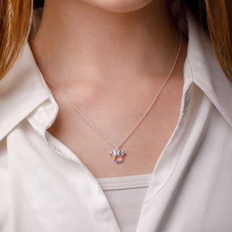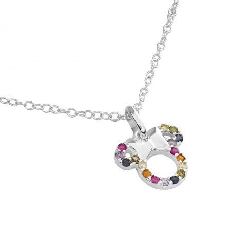 Ce collier Disney en argent sterling met en avant un pendentif raffiné inspiré de Mickey Mouse, orné de pierres multicolores qui apportent éclat et modernité. Présenté dans un élégant écrin, ce bijou combine finesse et magie Disney, parfait pour un cadeau unique et scintillant.