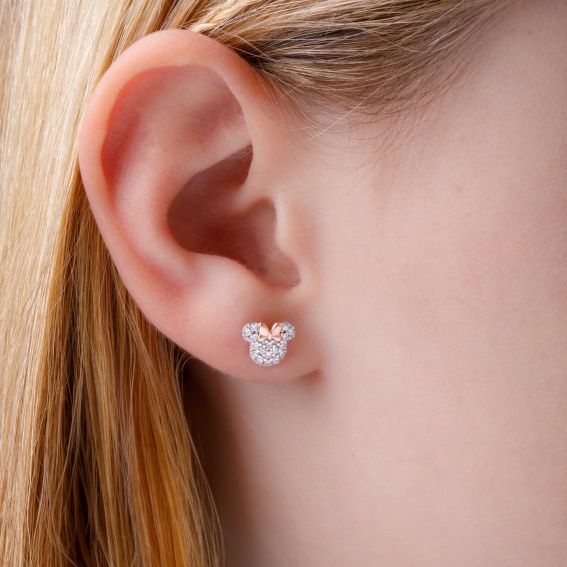 Boucle d'oreille pavé Mickey, Minnie argent 925