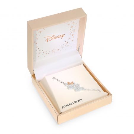 Ce bracelet Disney en argent sterling est orné d’un pendentif en forme de Minnie Mouse, pavé de pierres scintillantes. Son délicat nœud en or rose apporte une touche de raffinement et d’élégance. Idéal pour les amateurs de bijoux féeriques, ce bracelet célèbre l’univers intemporel de Disney avec éclat et subtilité.