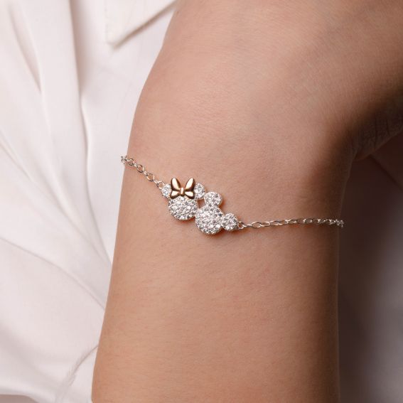 Bracelet pavé Mickey, Minnie argent 925