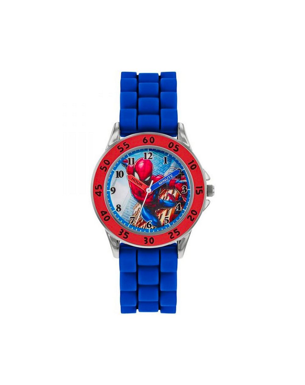 Le bracelet en silicone bleu souple et ajustable offre confort et résistance, idéal pour accompagner les enfants dans leurs aventures quotidiennes. Avec ses aiguilles “Hour” et “Minute” clairement indiquées, cette montre analogique est parfaite pour initier les plus jeunes à lire l’heure tout en gardant leur super-héros préféré au poignet.