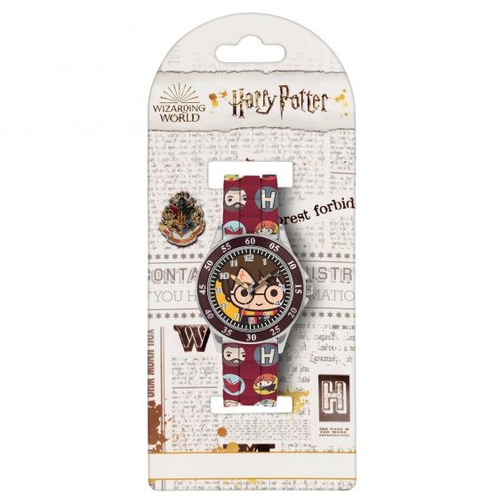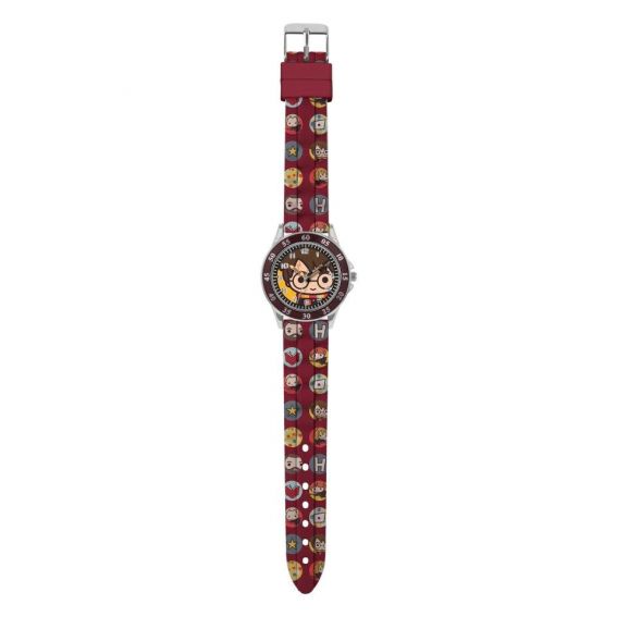 Le bracelet en silicone bordeaux est décoré de symboles et personnages emblématiques de la saga : Hagrid, Ron, le hibou Hedwige, le blason de Poudlard… Résistante et confortable, cette montre analogique est idéale pour accompagner les enfants fans du monde magique de J.K. Rowling, tout en leur apprenant à lire l’heure.