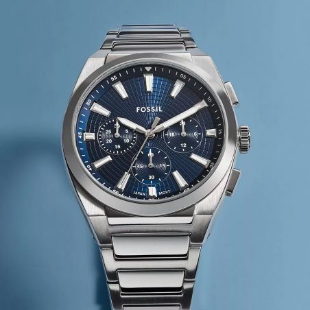 Avec son cadran bleu intense, son boîtier de 44 mm et son bracelet en acier inoxydable argenté, la Everett FS6104 affiche un look moderne et puissant. Son chronographe à quartz assure une précision optimale, tandis que son étanchéité 5 ATM la rend idéale pour un usage quotidien.