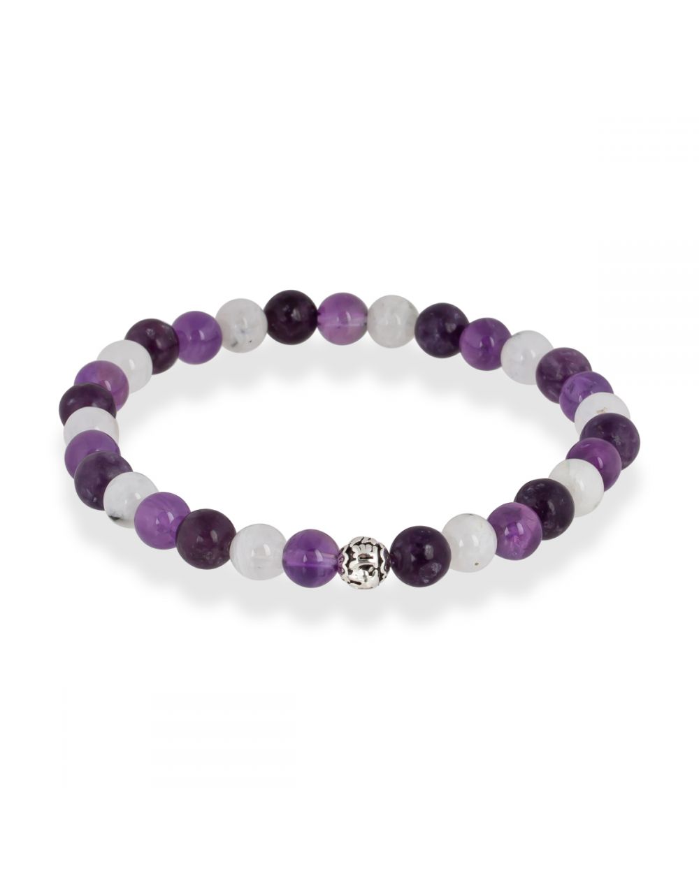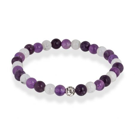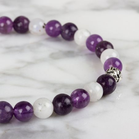 Ce bracelet comporte des pierres "Améthyste", "Lépidolite", "Pierre de lune".