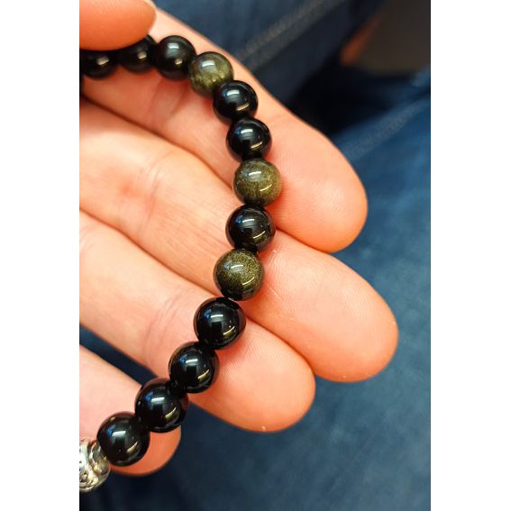 Bracelet obsidienne dorée en pierre naturelle avec les vertus suivantes: Donne de l’énergie, éloigne les influences négatives, donne le courage.