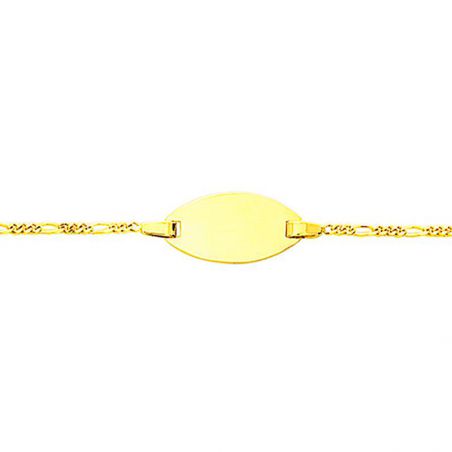 Ce matricule pour enfant est un bracelet en or 9 carats doté d'une petite plaquette qui peut être gravée d'un prénom et d'une date. Ce bracelet est réglable en longueur.