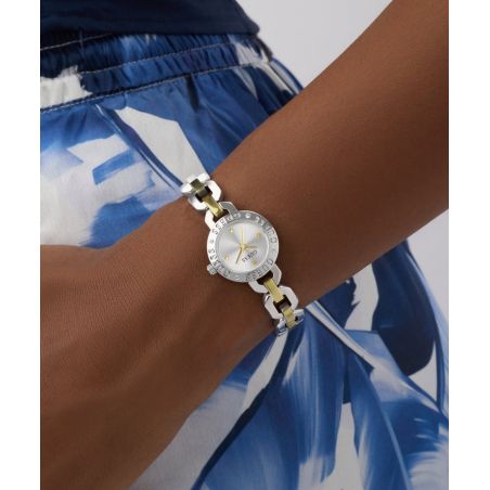 Son bracelet en acier bicolore à maillons chaîne apporte une touche mode très actuelle. Grâce aux G-Links auto-ajustables, la montre s’adapte facilement à votre poignet, sans outil, pour un confort optimal.