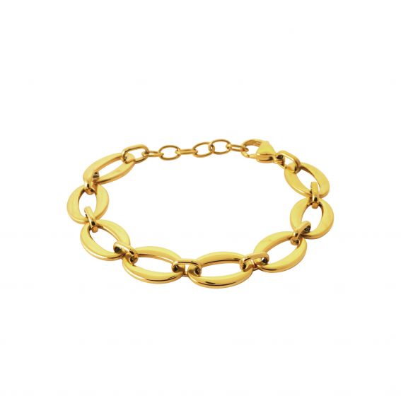 Intemporel et raffiné, ce bracelet en acier inoxydable doré se distingue par ses maillons ovales au poli parfait. Un essentiel chic et moderne, idéal à porter seul ou en accumulation. ✨