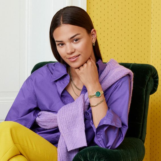 La montre CLUSE Féroce Mini marie harmonieusement minimalisme et détails épurés marqués. Avec son boîtier rond doré de 25 mm, son cadran blanc et son bracelet de montre doré à 7 maillons de 12 mm, cette montre Féroce Mini pour femmes fera assurément sensation.