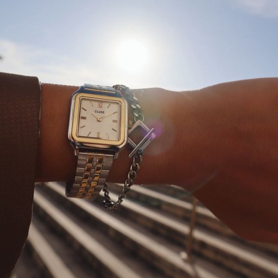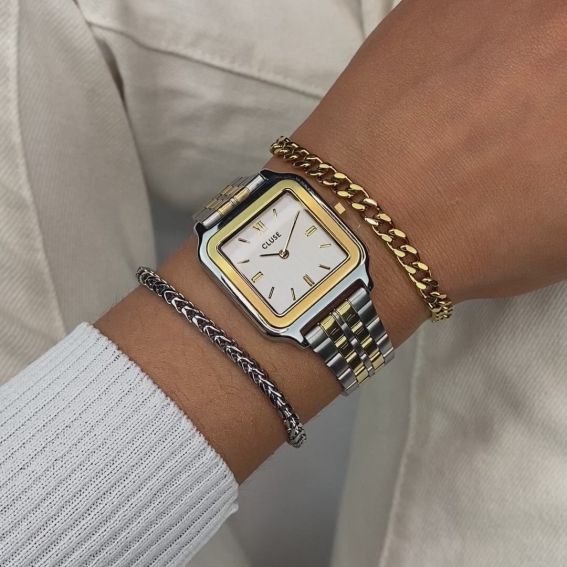 En résumé, la montre "Gracieuse" pour femmes de CLUSE est un chef-d'œuvre bicolore qui allie élégance, style et fonctionnalité. Conçue pour celles qui recherchent une esthétique plus audacieuse, elle offre la possibilité de personnaliser son style tout en assurant un ajustement confortable et facile à porter.